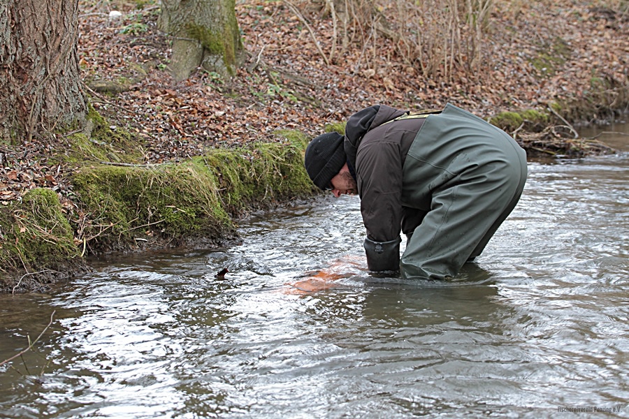 Die Mitglieder des Vereins wilderten befruchtete Eier in ihrem Vereinsgewässer, dem Wiesbach, aus. Der Wiesbach ist ein kleiner Bachlauf, der auf seinem Weg aus Welden bis zum Lech fast natürlich erhalten ist. Der Verein hat ein Teilstück zwischen Unterdießen und Ellighofen gepachtet und hegt dieses seit zwei Jahren. „Im Wiesbach befindet sich ein kleiner natürlicher Bestand der Bachforelle“, sagt Sven Lüttgens, der Zweite Vorsitzende des Vereins.