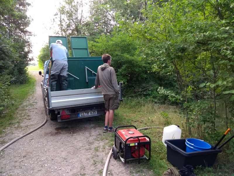 Irgendwann ist immer das erste Mal. So hatten wir die Gelegenheit einen kleinen Feuerlöschteich abfischen zu dürfen. Wir haben uns natürlich vorher das Gewässer angeschaut und feststellen können, das reichlich viel Bewegung im Wasser war.