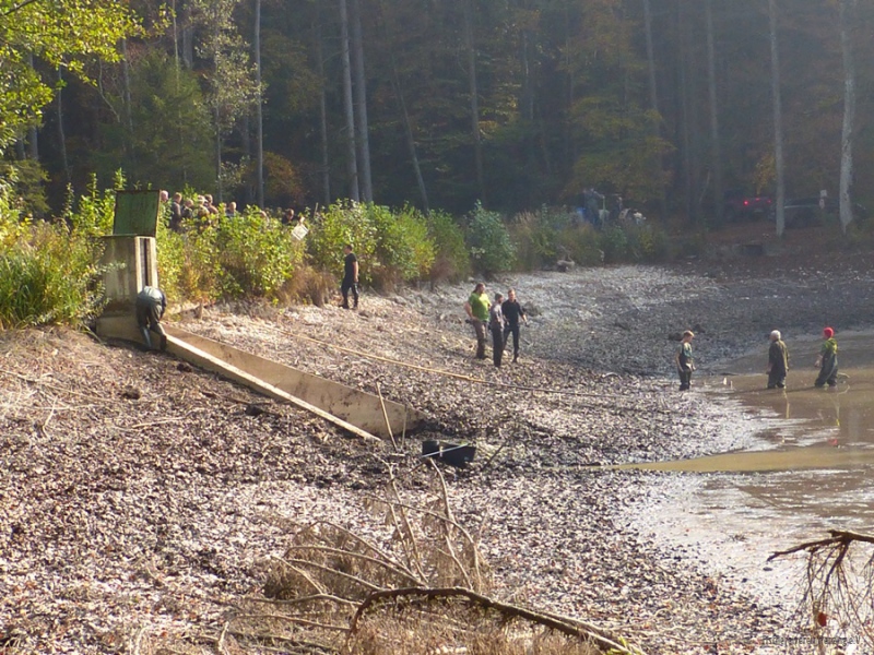 Ach am Mönch selber waren einige Dinge zu richten. Dafür wurde der Hofweiher über längere Zeit behutsam abgelassen. Somit hatten auch die Fische eine Chance, sich durch das zurücklaufende Wasser an tieferen Stellen einzustellen.