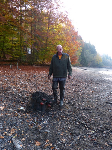 Ach am Mönch selber waren einige Dinge zu richten. Dafür wurde der Hofweiher über längere Zeit behutsam abgelassen. Somit hatten auch die Fische eine Chance, sich durch das zurücklaufende Wasser an tieferen Stellen einzustellen.